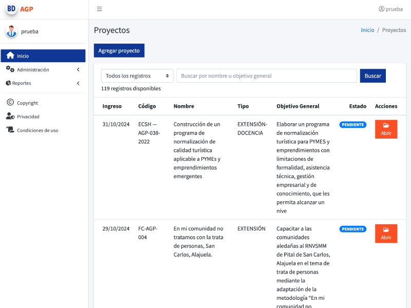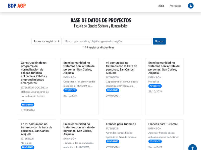 La Base de Datos de Proyectos del Área de Gestión de Proyectos, es una herramienta diseñada para gestionar los proyectos de la Escuela de Ciencias Sociales y Humanidades (ECSH).