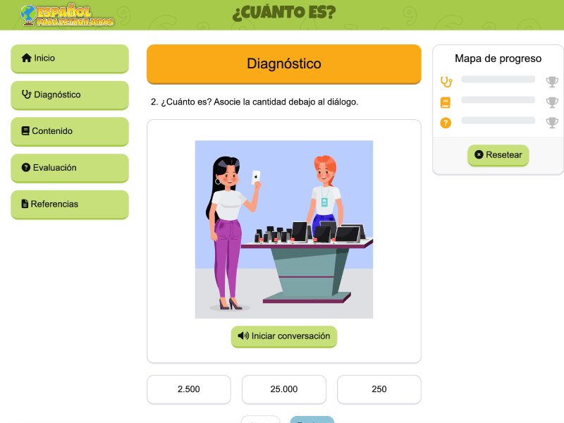 El Módulo 8, ¿Cuánto es? Cifras y números, pertenece a la serie de objetos de aprendizaje "Español para extranjeros: Serie Nuevo Mundo". Este módulo tiene como propósito enseñar a manejar información básica relacionada con cifras y números, promoviendo su uso en intercambios sencillos y cotidianos.